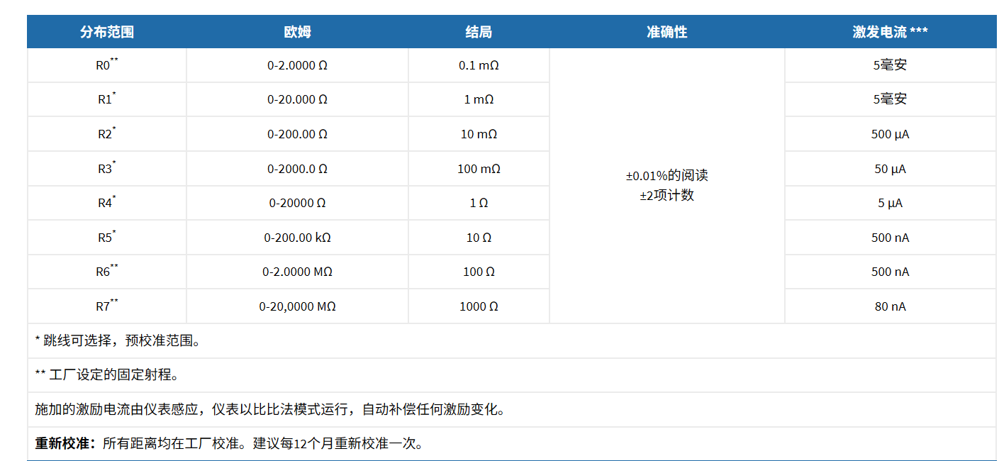 ●三种固定工厂特制范围,分别为2.0000欧姆、20000毫姆、20000毫姆