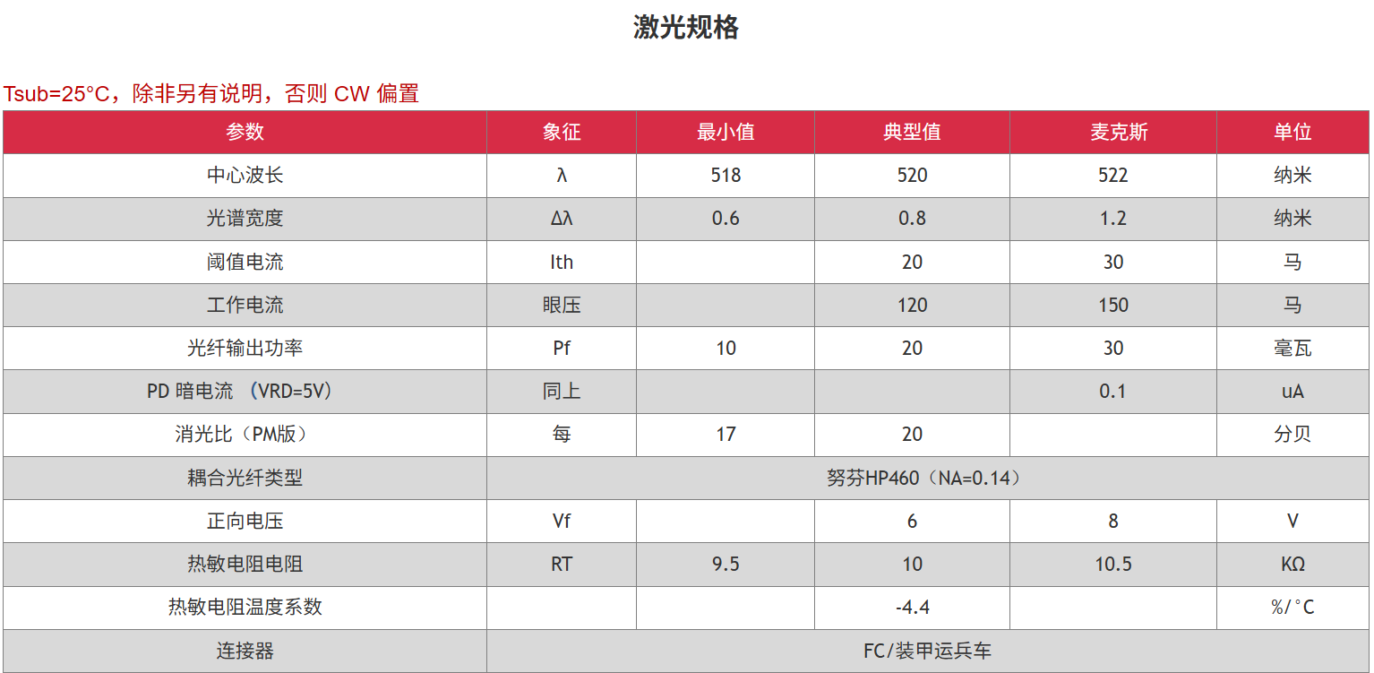 520nm FP SM 光纤耦合激光二极管