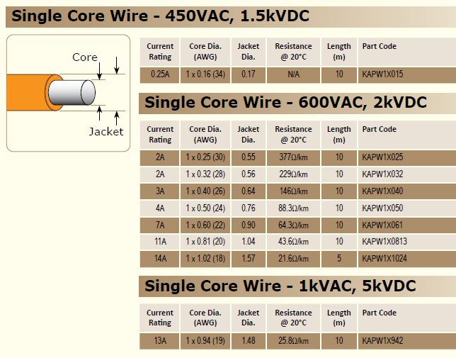 单芯线 – 450VAC,1.5kVDC