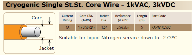 低温单芯不锈钢导线 – 1kVAC,3kVDC