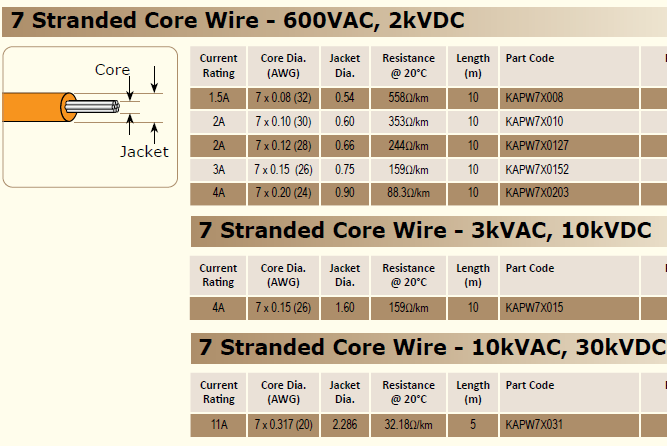 7 股绞合导线 – 600VAC,2kVDC
