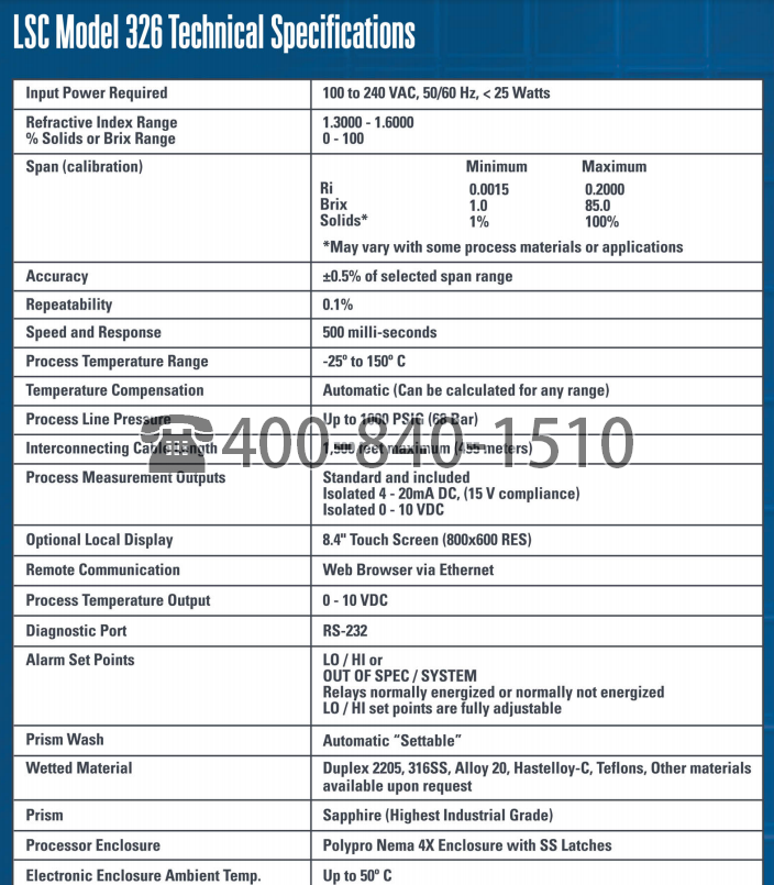 海默生在线折光仪标配隔离式4-20mA输出信号,可实现过程自动化控制。另配备USB接口,可轻松下载诊断和历史文件,并发送至LSC技术团队以获取故障排除支持。