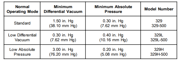 L. J. Engineering 329型是一种参考绝对压力的非泄压设计。如果系统中没有泄漏,没有自泄压功能的调节器将不会降低真空度差。必须将空气排入系统,或者必须存在一些泄漏以降低真空度。绝对压力参考控制相对于完美真空的真空度。绝对参考最常用于实验室、校准、高度模拟和其他需要绝对压力控制的应用。