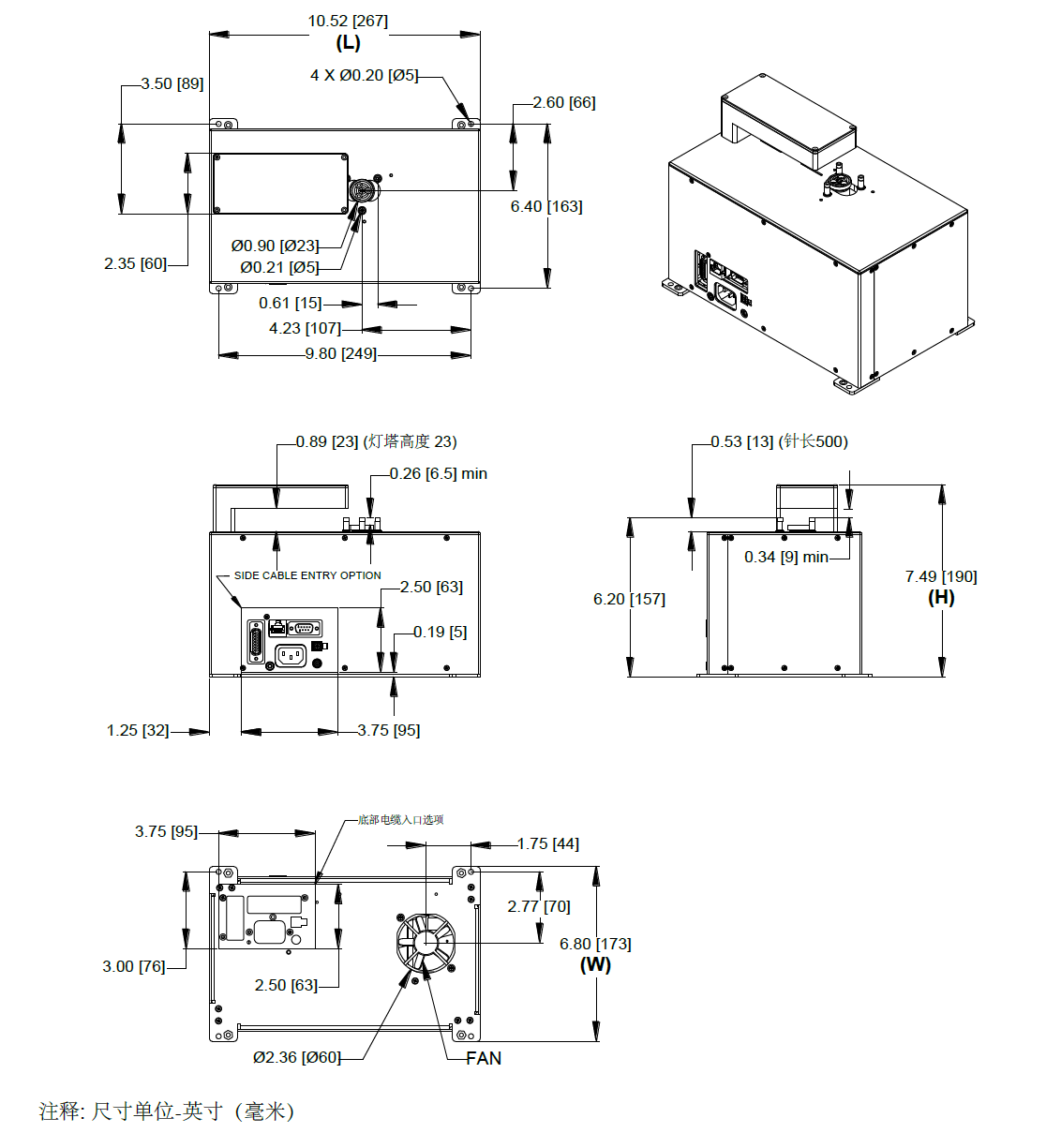 机身尺寸 (W x L x H):173mm x 267mm x 190mm