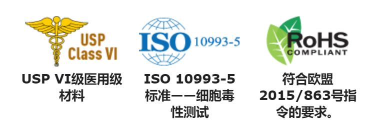 - 符合美国药典第六类标准及ISO 10993-5标准。