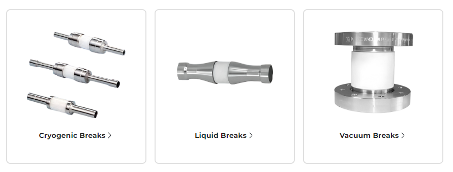 MDC电气绝缘套管系列为低温、液体和真空应用环境提供全面的解决方案,在各类科学与工业系统的传输线路中起着至关重要的电气隔离作用。