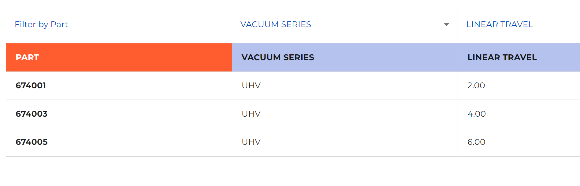 提供2″、4″或6″(50.8、101.6或152.4 mm)行程长度的标准型号,安装于2-3/4″ Conflat® CF金属密封法兰上。可按需定制其他行程长度,例如3″(76.2 mm)。