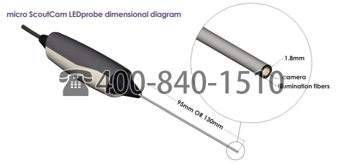 微型 ScoutCam LEDprobe 是一种直径为 1.8 毫米的内窥镜设备,它将微型 ScoutCam 1.2 与照明结合在一个整体直径为 1.8 毫米的不锈钢轴中,该轴可以是 95 毫米或 130 毫米长。
