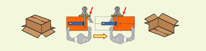 适用于对 实心纸板、单层或双层瓦楞纸板 制成、且 尺寸经常变化的空纸箱 进行底部封合。
