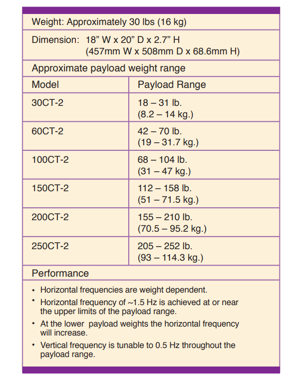 Minus K 该隔振平台极易操作,提供标志性的0.5 Hz垂直固有频率与约1.5 Hz水平固有频率,仅需两个调节步骤。CT-2非常适合各类台式显微镜使用。