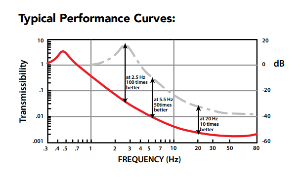Minus K Technology CM-1 低频减震器产品曲线图: