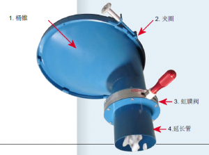 1. 中心对称的45度角桶锥 2. 夹圈 3. 虹膜阀