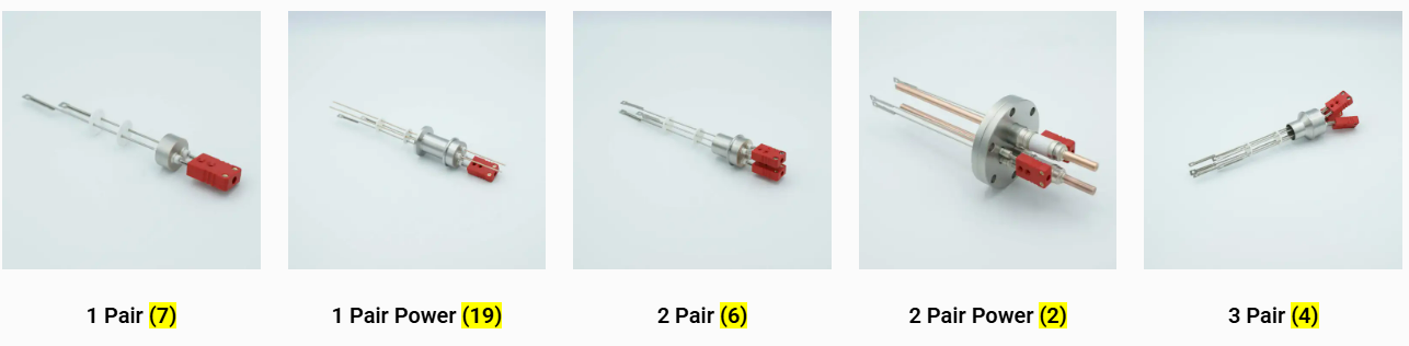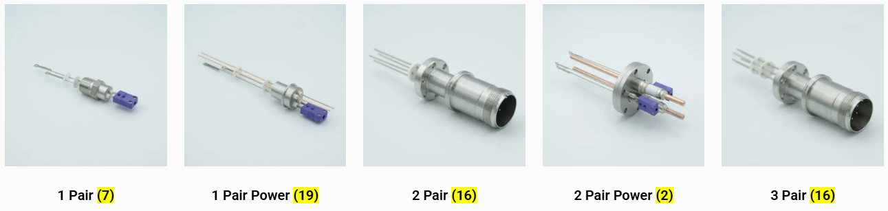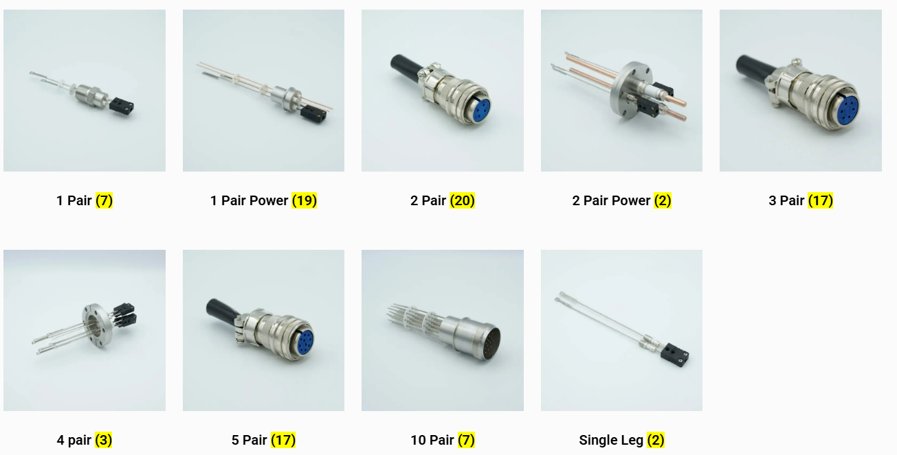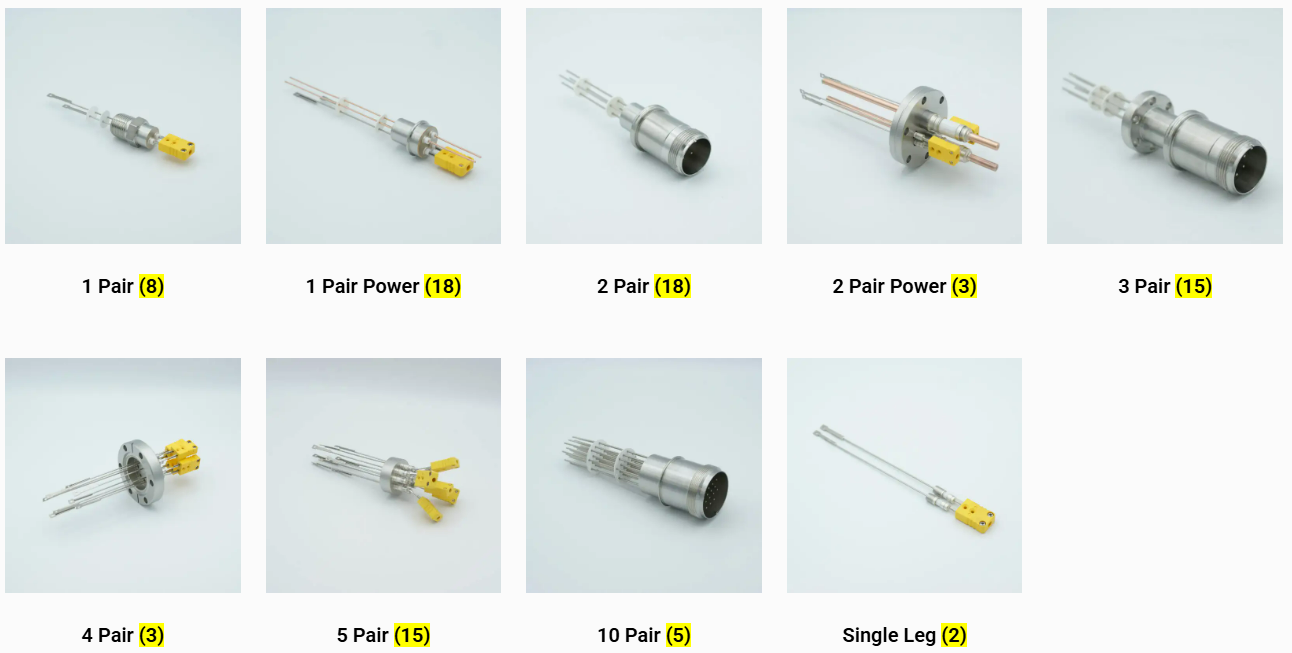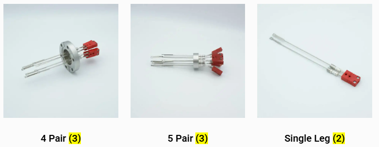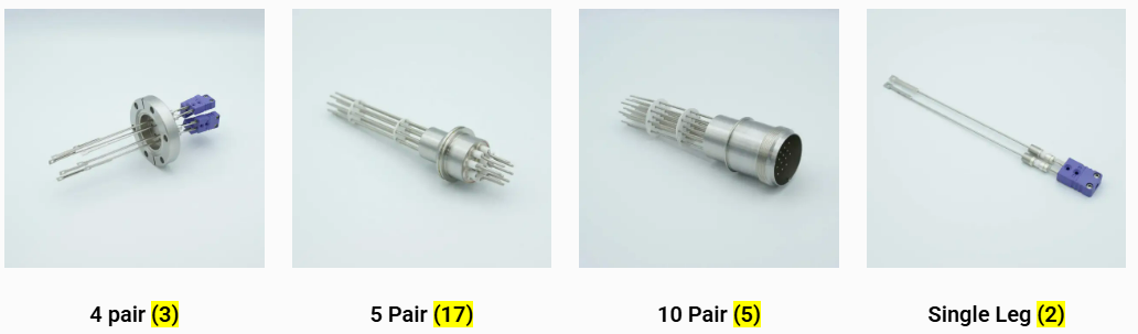 MPF Products 公司生产 K 型、C 型、E 型、J 型、R 型、S 型、T 型、N 型以及众多其他适用于超高真空应用的热电偶穿通件。