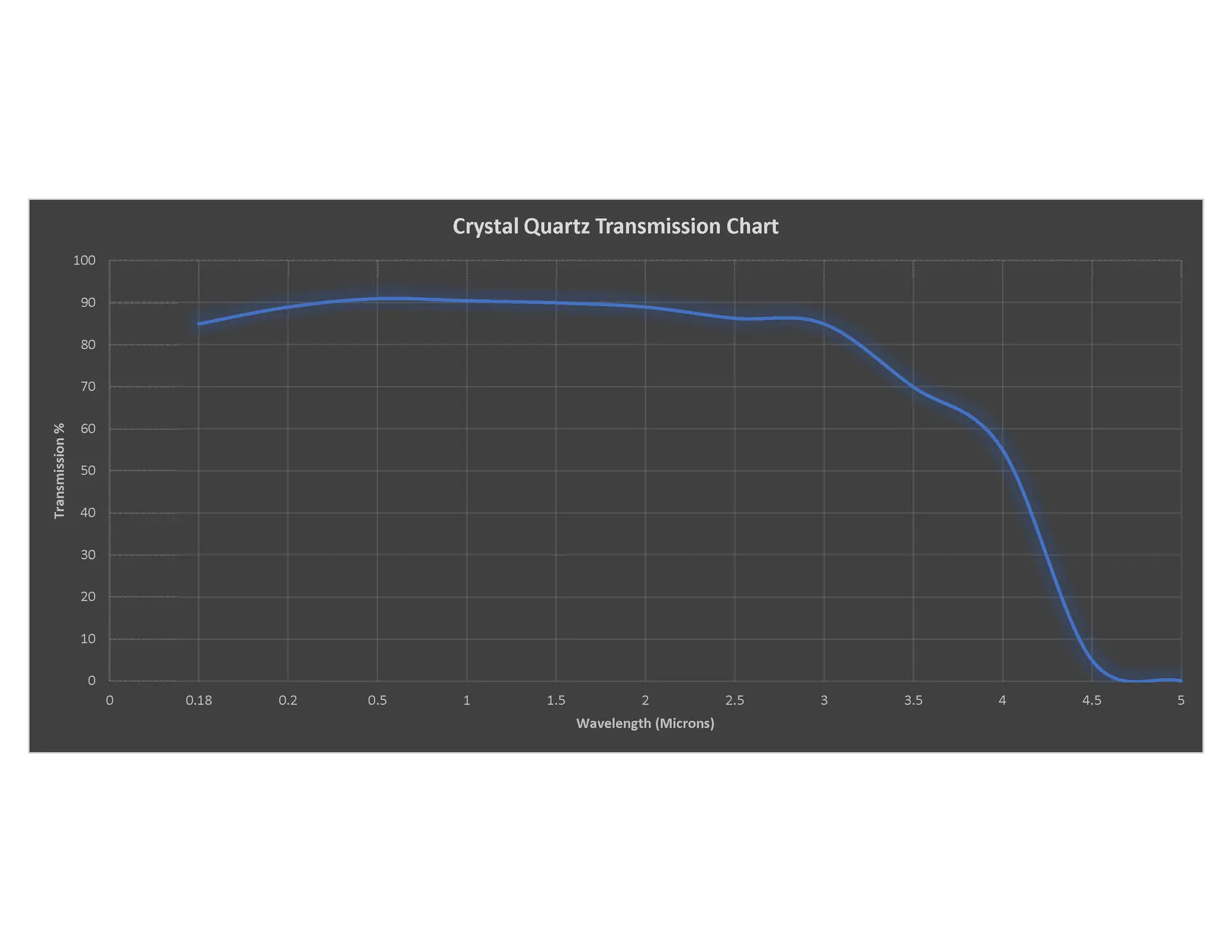 水晶石英(SiO₂)通常在 3-5 微米波段用作光学窗口,也可用作光学滤波器。水晶石英(SiO₂)密度低、导热性高,是制作激光反射镜的理想材料。