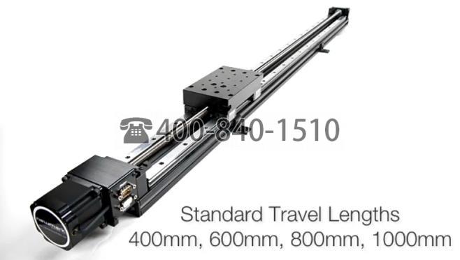 D-Slide的行程长度为400 mm,600 mm,800 mm和1000 mm。D-Slide标配高扭矩的23步进电机。电机选件包括MDrive智能步进电机和带有1000线编码器的无刷伺服电机。步进电机选件与旋转编码器一起提供。行程限位开关是D-Slide线性位移台的标准配置。