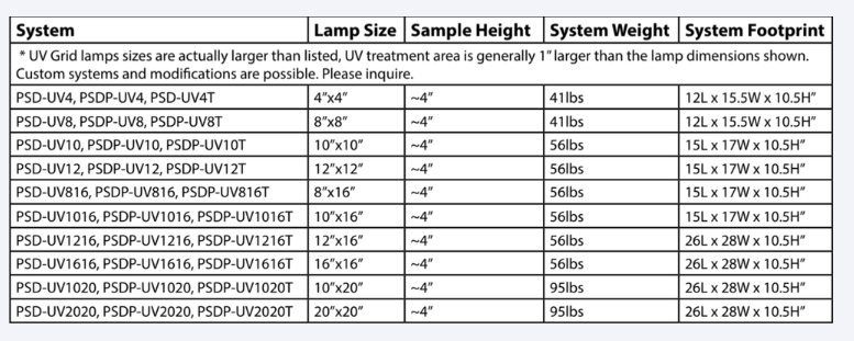 样品高度: 所有系统均配备可调高度样品台和外部平台锁,以确保样品与灯管之间保持适当的距离。标准样品台的尺寸等于或大于紫外网格尺寸。