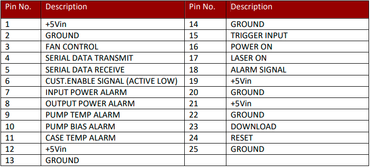 | Electrical Interface Connector | PN: MD25M2000/AA, 25-PIN |