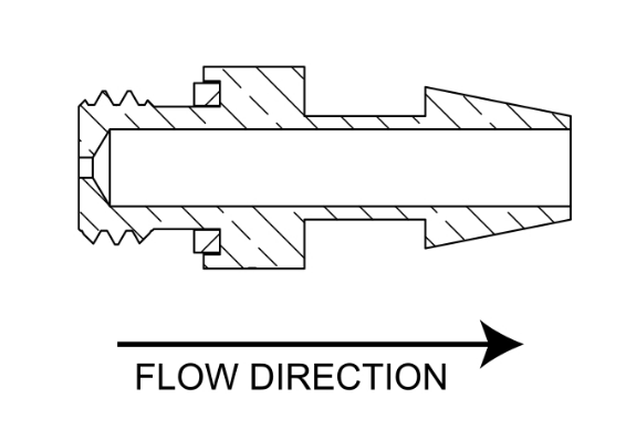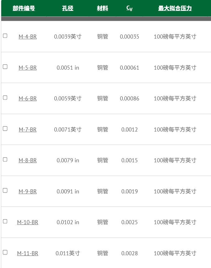 美国O’Keefe Controls,精密金属孔,适配器,Barb x 10-32 UNF,一体成型的实心金属结构,尺寸范围从0.004英寸到0.004英寸不等 孔径0.063英寸