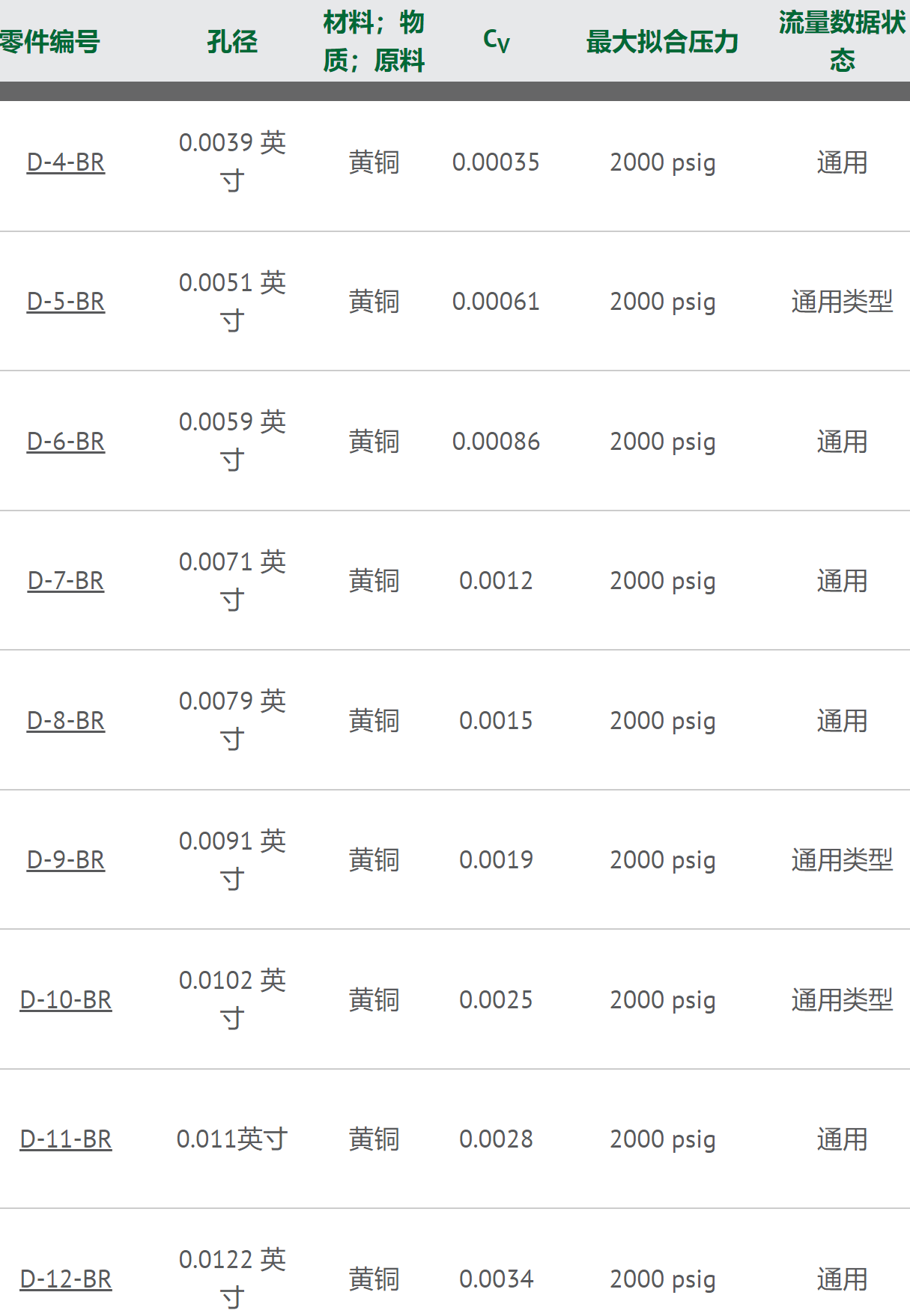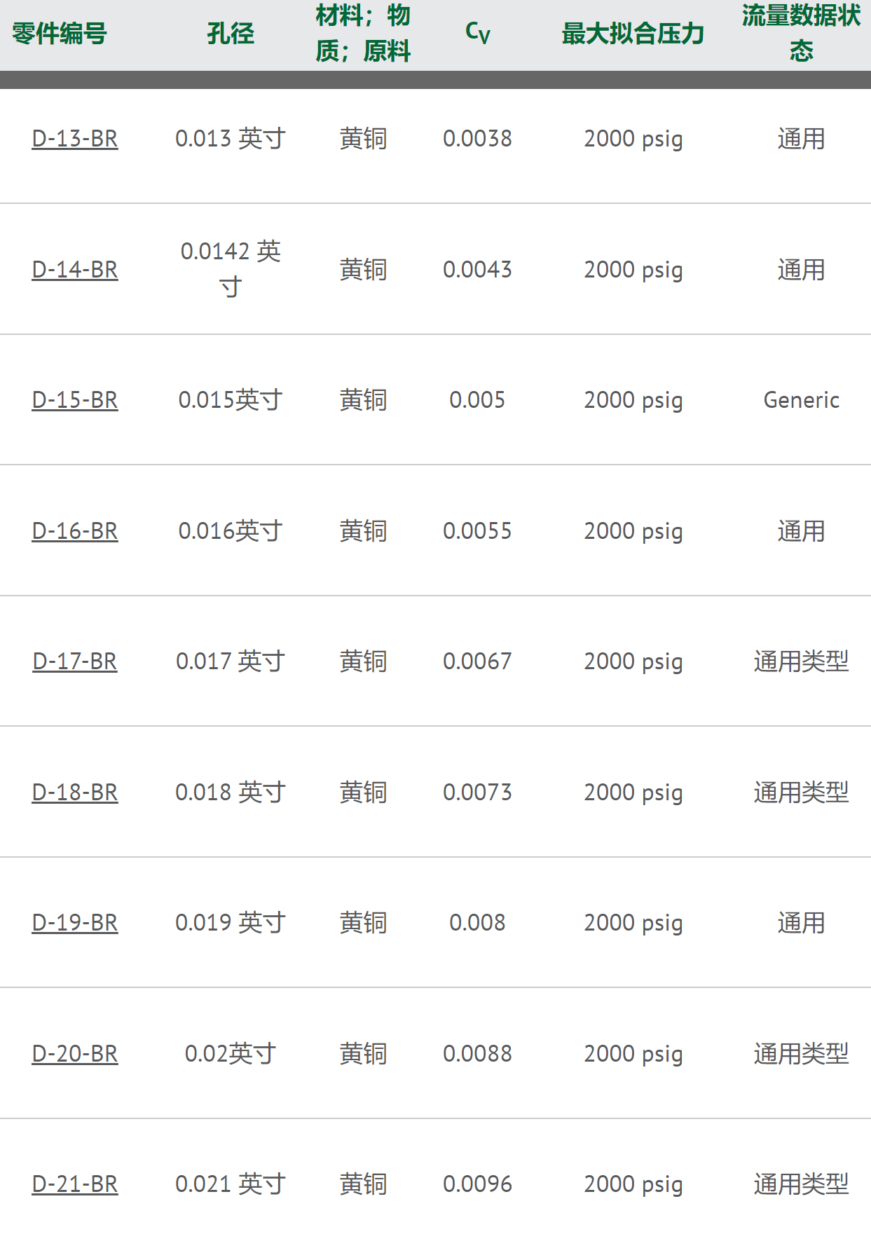 采用整体式纯金属结构。孔洞经过精密加工、彻底清洁,并按照严格的标准进行流量测试。孔径范围从0.004英寸到0.125英寸;也可根据需求定制特殊尺寸。