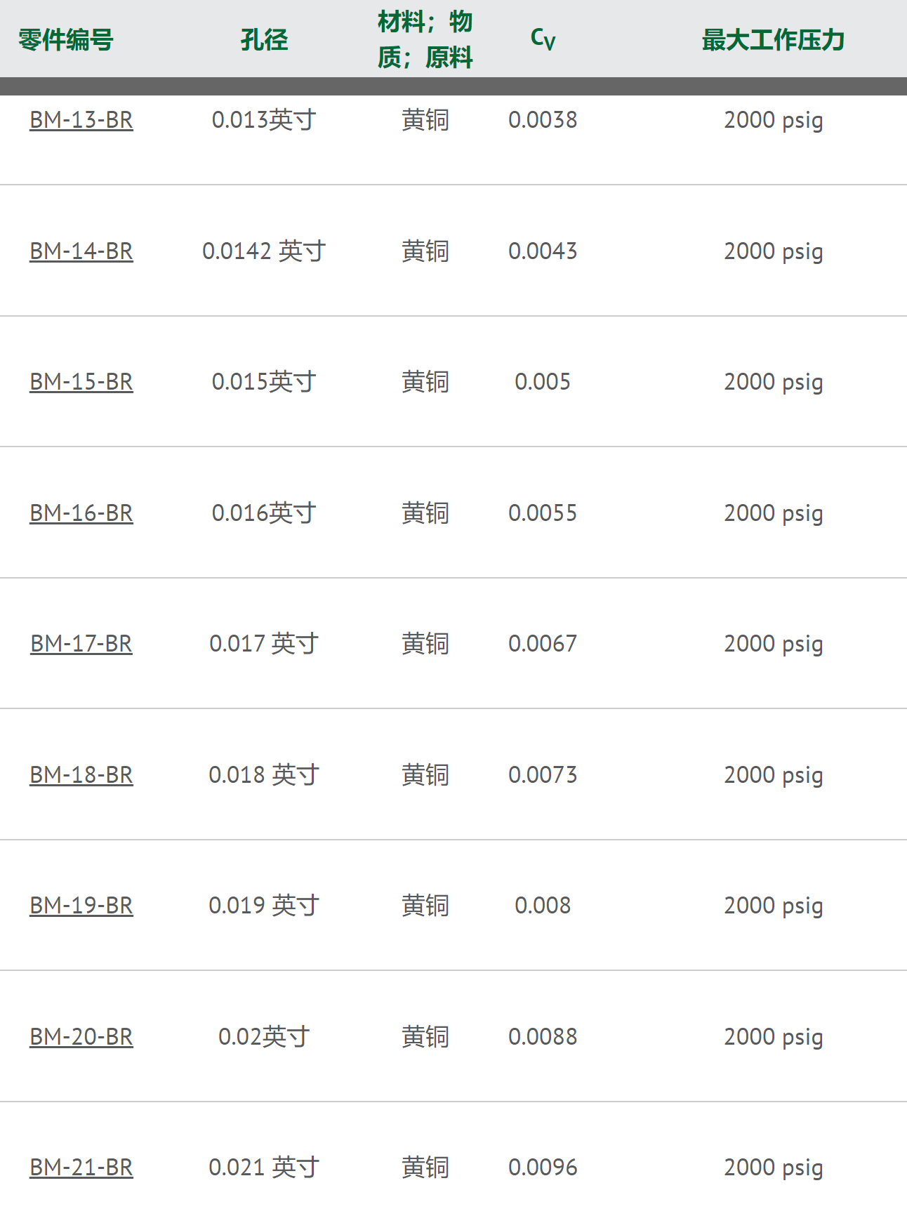 采用整体式纯金属结构。孔洞经过精密加工、彻底清洁,并按照严格的标准进行流量测试。孔径范围从0.004英寸到0.125英寸;也可根据需求定制特殊尺寸。DEL型产品为分体式结构。