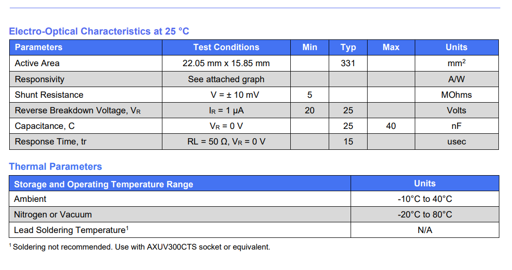 OPTO DIODE SXUV300C EUV 高速陶瓷封装光探测器规格: