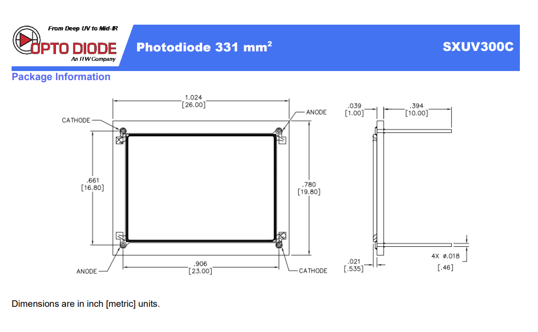 OPTO DIODE SXUV300C EUV 高速陶瓷封装光探测器尺寸规格: