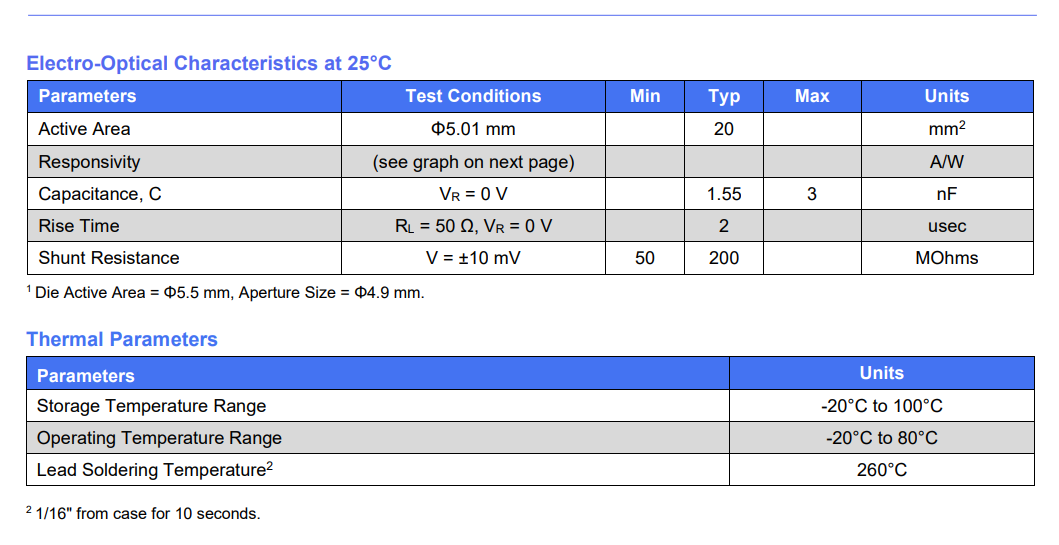 美国OPTODIODE SXUV20C EUV低噪声光探测器规格: