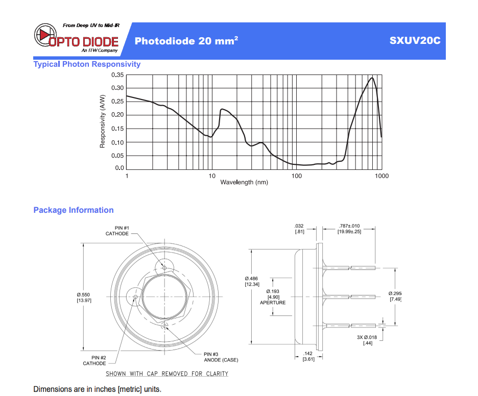 美国OPTODIODE SXUV20C EUV低噪声光探测器光曲线图及尺寸: