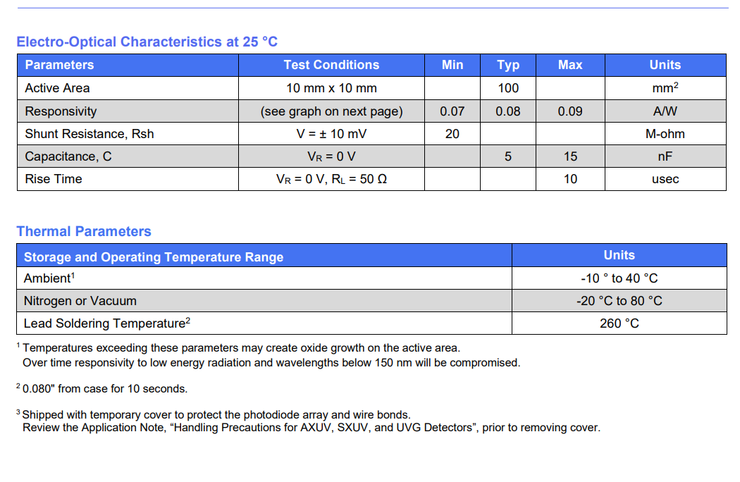 OPTO DIODE AXUV100G 0.0124nm to190nm大光敏二极管规格: