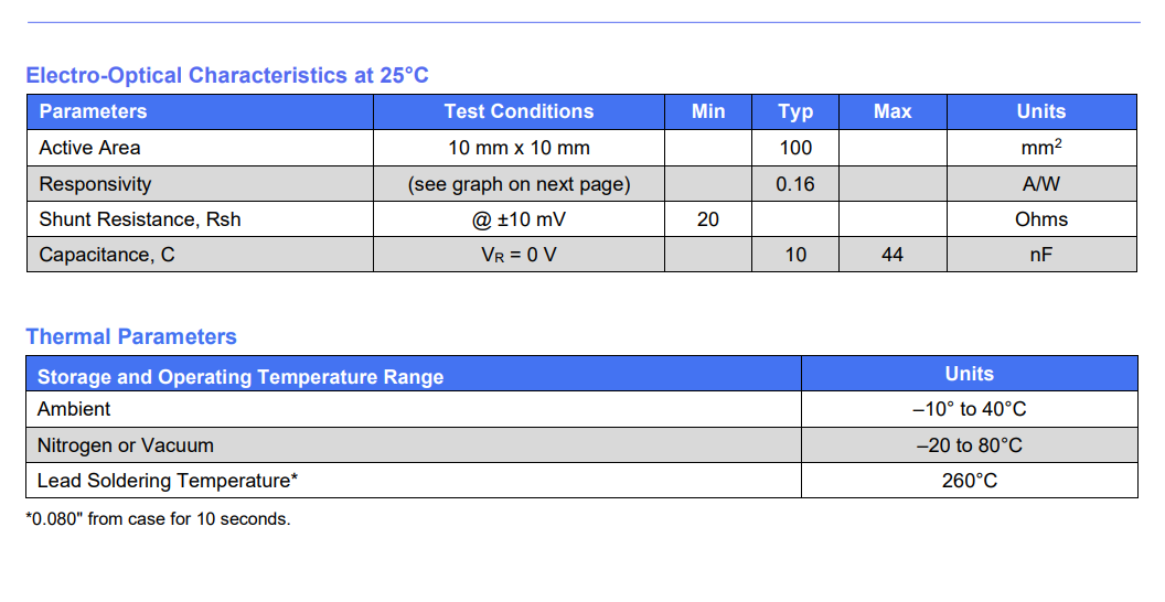 OPTO DIODE AXUV100TF030 带集成滤波器的光电二极管特性: