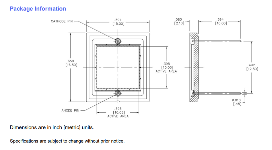 OPTO DIODE AXUV100TF030 带集成滤波器的光电二极管封装尺寸: