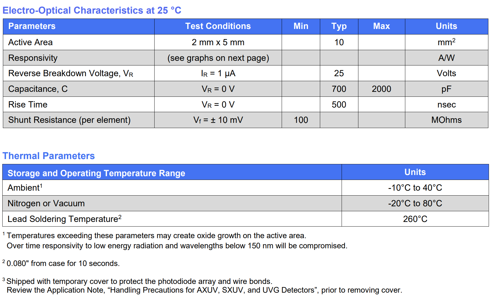 AXUV20HS1;AXUV20A;AXUV63HS1;AXUV63HS1-CH;AXUV100G;