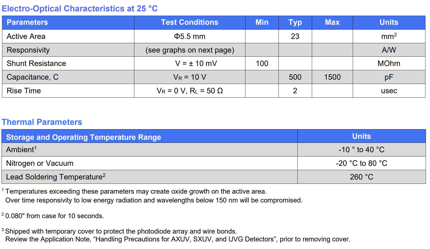 AXUV20HS1;AXUV20A;AXUV63HS1;AXUV63HS1-CH;AXUV100G;