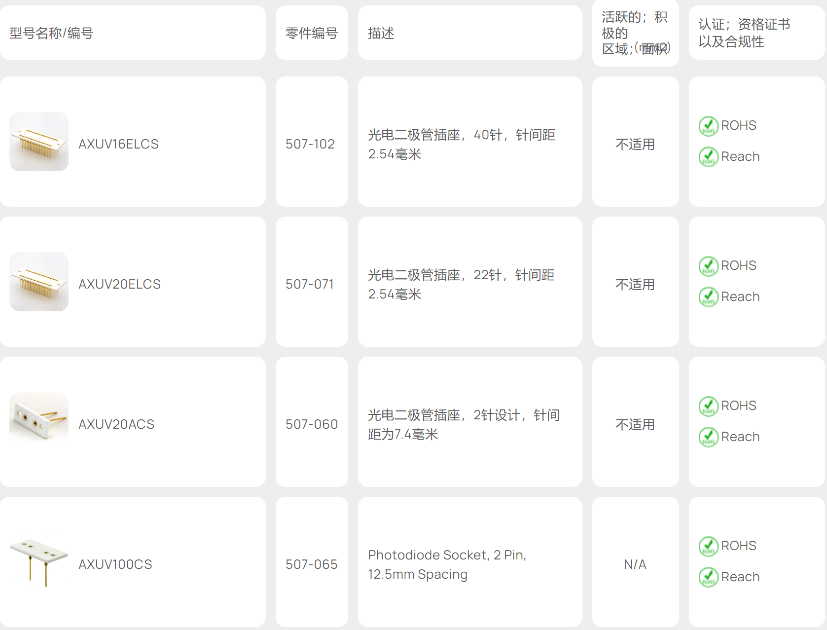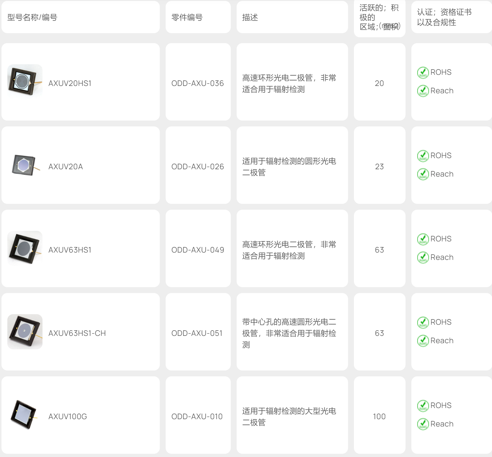 AXUV20HS1;AXUV20A;AXUV63HS1;AXUV63HS1-CH;AXUV100G;
