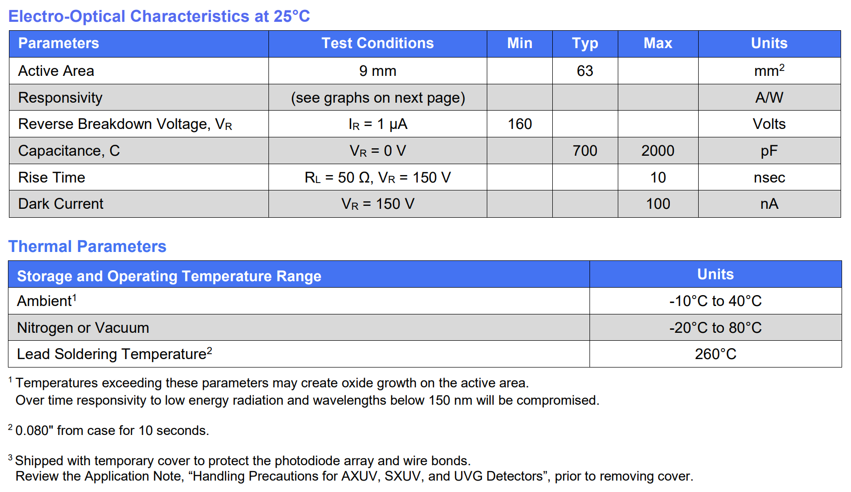 AXUV(HIGH ENERGY PHOTON, ELECTRON, AND X-RAY DETECTION)