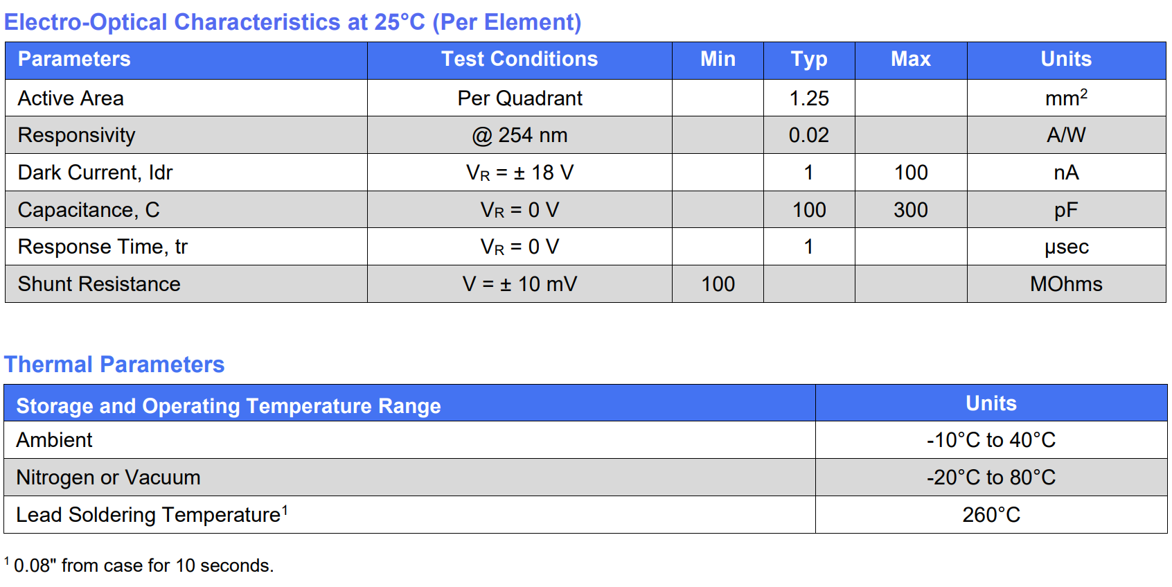 OPTO DIODE SXUVPS4C 光电二极管规格参数: