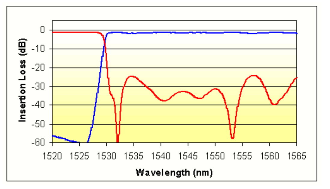 在其他应用中,可调边缘滤波器可以采用 3 端口配置,其中一个输出为长通,另一个输出为低通。