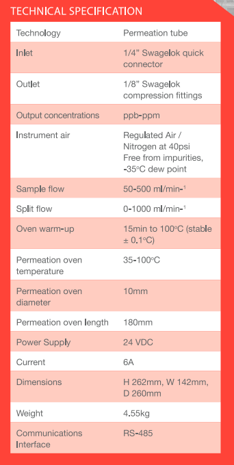 - 渗透管被放置在OVG-4中,它生成用于测试和校准的可追溯气体标准。