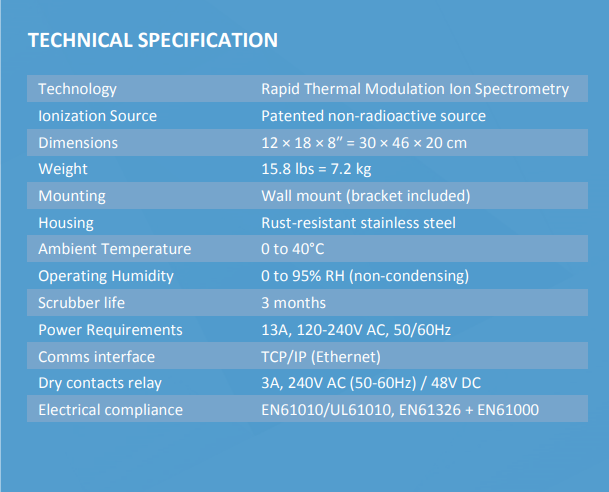 Owlstone OwlSens-T的技术规格