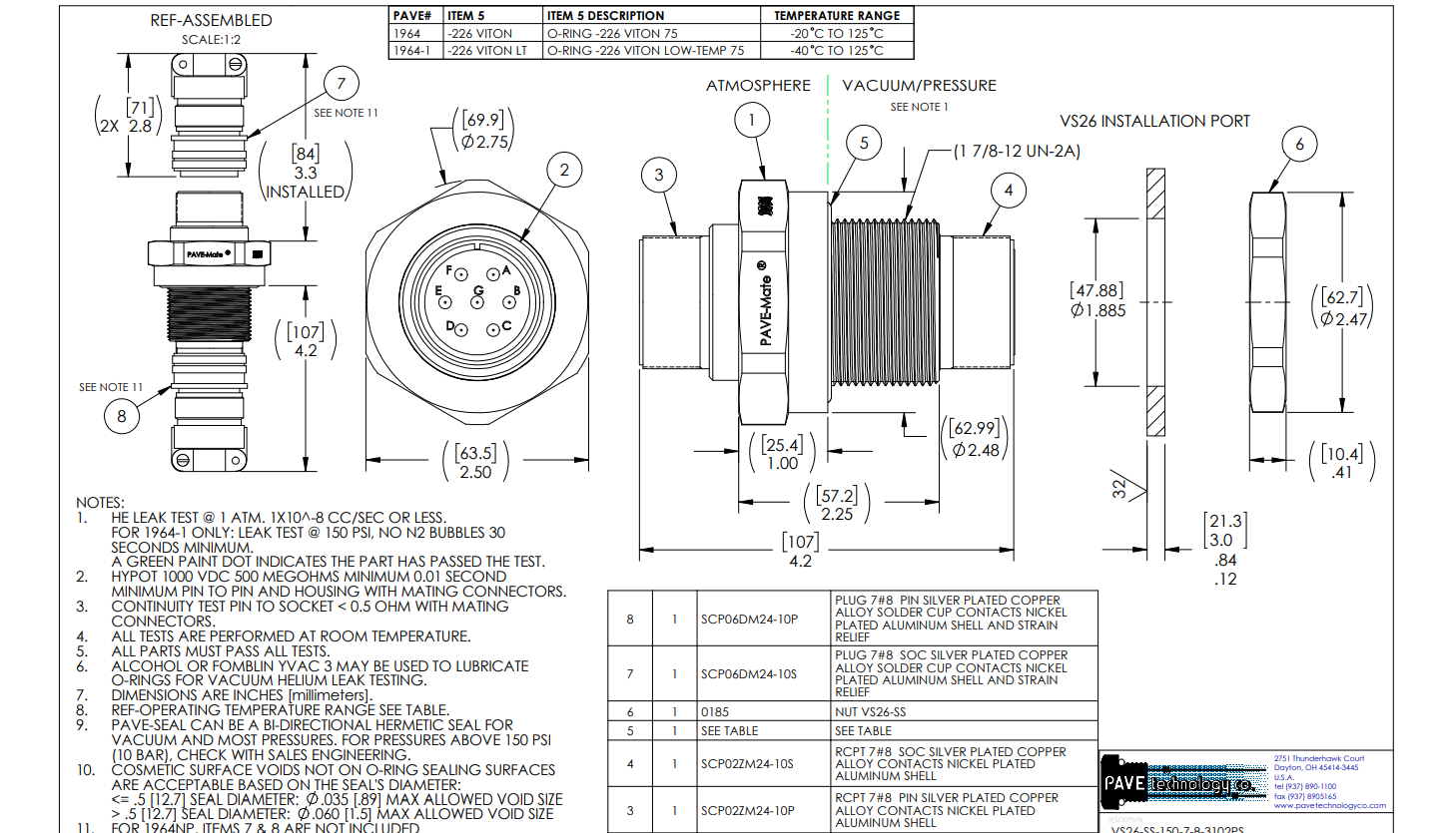 PAVE Technology Mate VS26-SS-150-7-8-3102PS高密度双向密封电连接器规格: