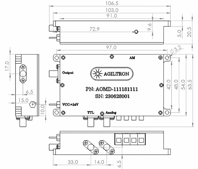 为防止损坏,AOMD在开路或短路时不得通电,且必须确保良好接地以获得最佳性能。由于装置会产生热量,必须用固定螺钉将其安装在金属结构上以散热。声光调制器的上升和下降时间仅与激光束大小相关。
