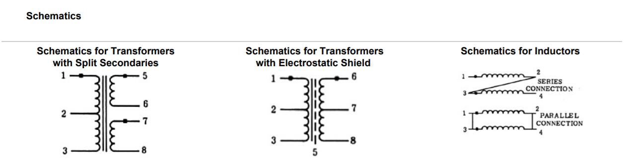 所有电感器都有分裂绕组,并列出了串联和并联连接的测量值。