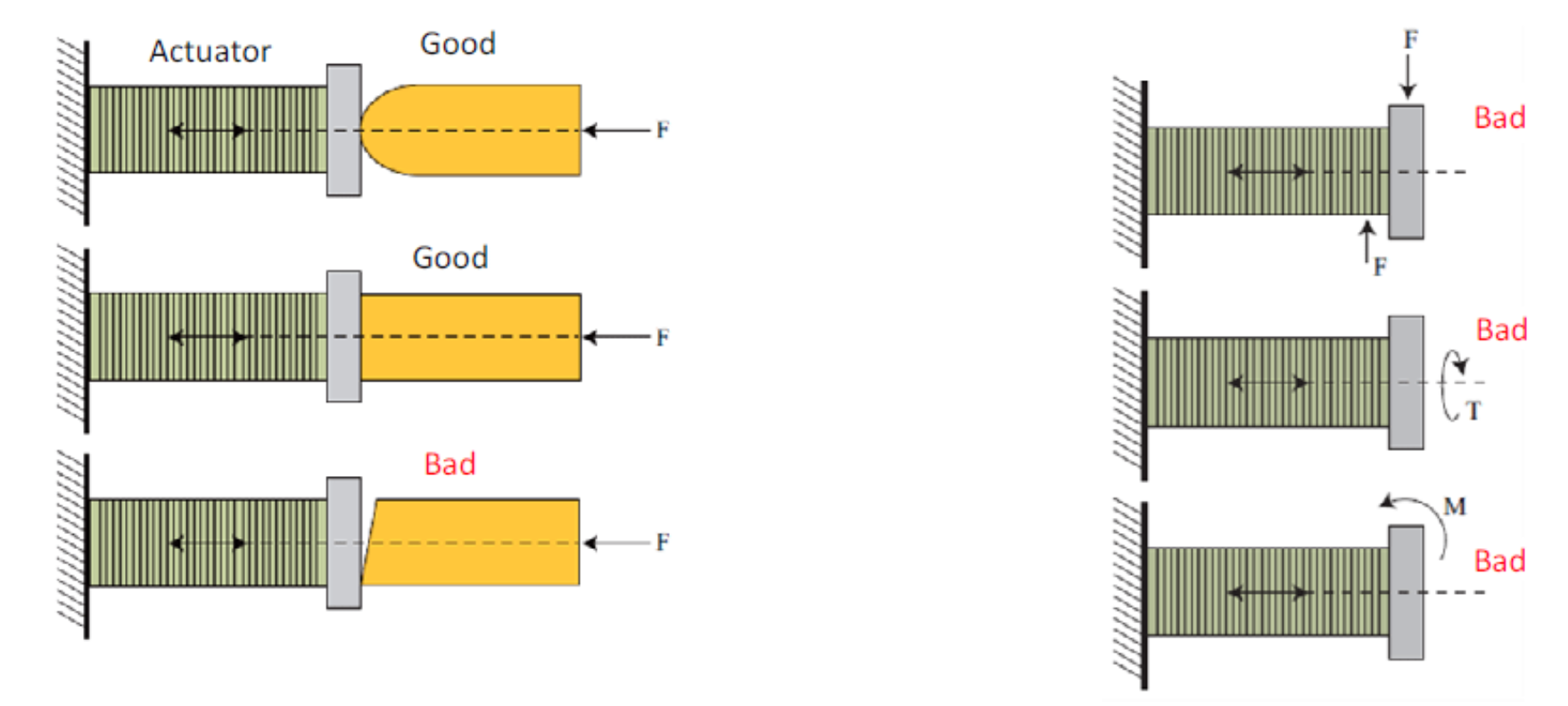 堆叠式执行器不应承受过大的拉伸载荷、分布不均匀的载荷、偏离轴心的载荷、弯矩或扭矩。