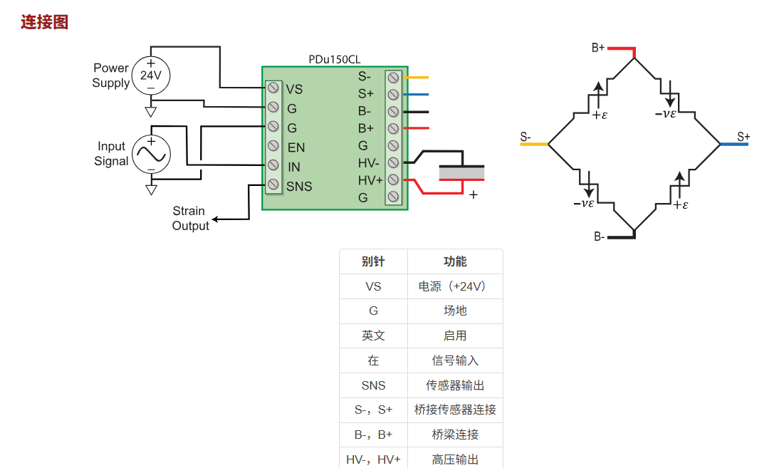 由两个90度花纹传感器组成的全桥结构,对温度变化有良好抗拒力,线性度最佳,分辨率是半桥的两倍;但这种配置也需要更多的布线。PDu150CL可作为校准对购买,配备SCL系列闭环堆栈执行器。
