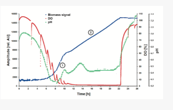 大肠杆菌二次生长期间的生物量、氧及pH值监测