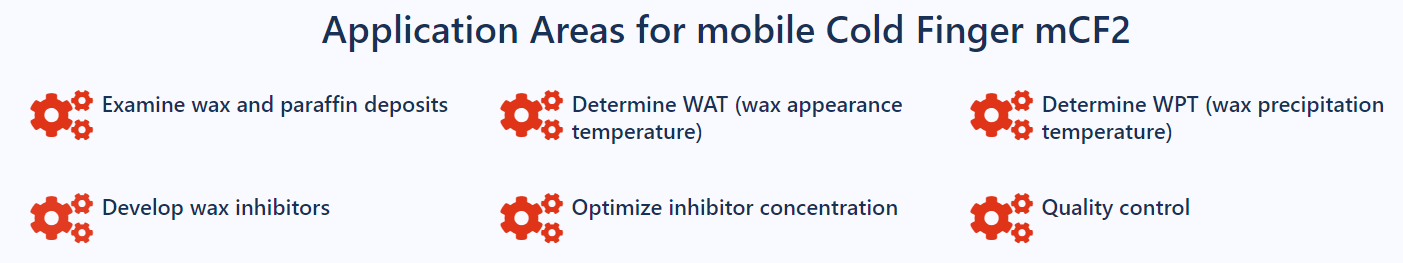 移动式冷指mCF2可检测原油中的蜡质和石蜡沉积物以及抑制剂的功效。该设备配备2个测量站,仅需极小占地面积,非常适合实验室少量样品检测或现场移动式独立实验需求。
