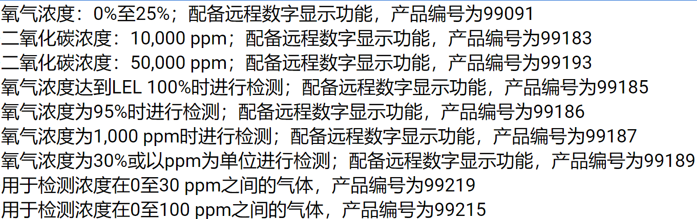 | 电源要求: | 24VDC电源通过 号氧气监测仪进行供电,电流为60毫安。 |