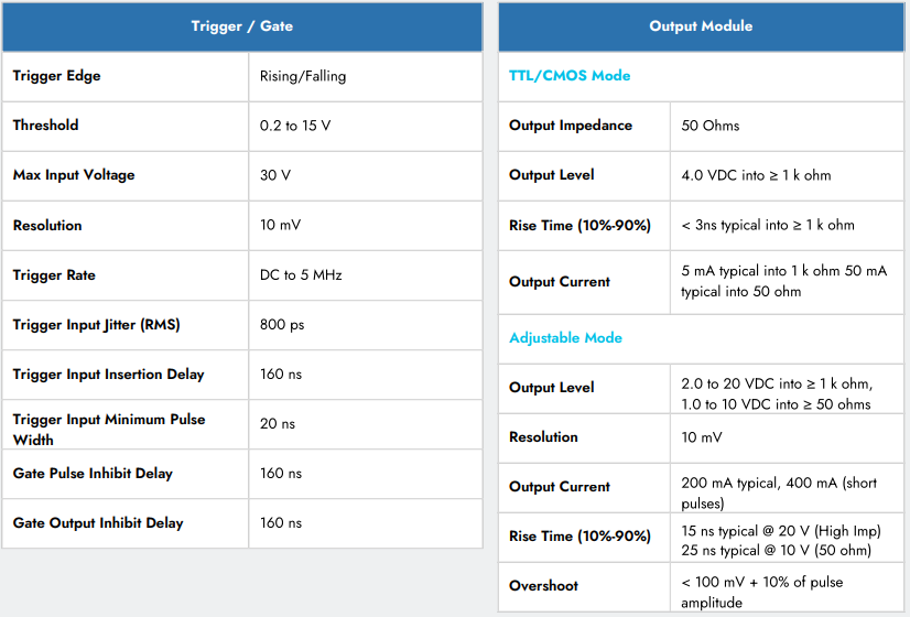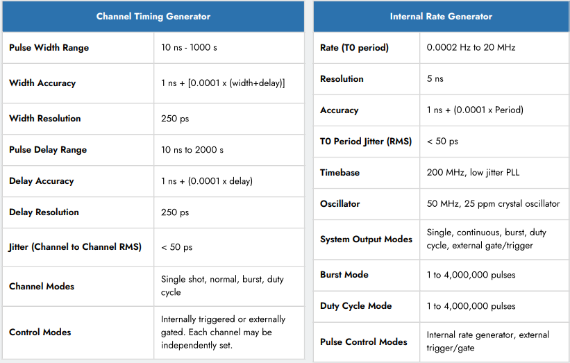 该系列设备具备精密定时与同步功能,可有效触发各类串行事件及必要设备,提供多达36路独立输出通道,支持门控/触发双输入模式及可选的双触发功能,并配备外部时钟参考输入接口。