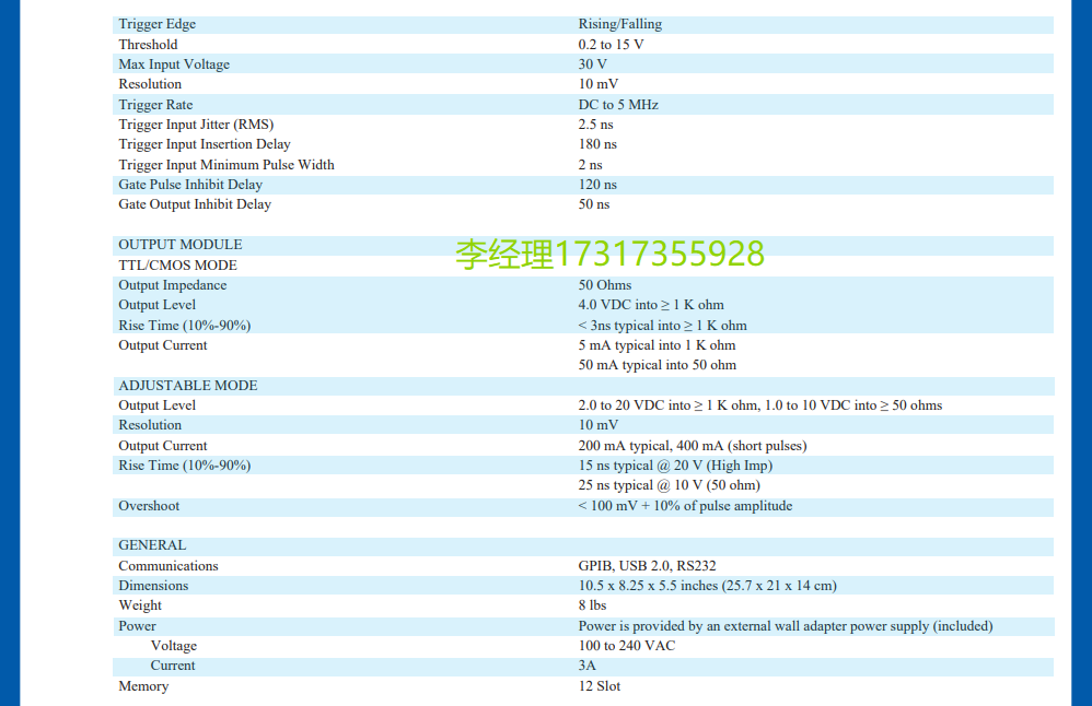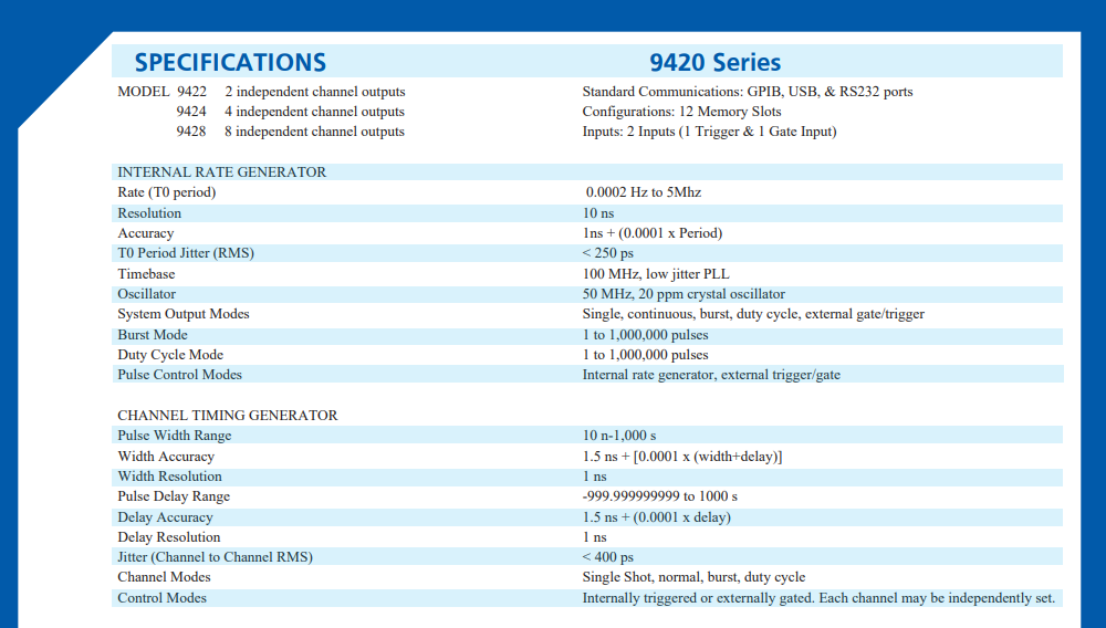 Quantum Composers 9420系列数字延迟脉冲发生器规格: