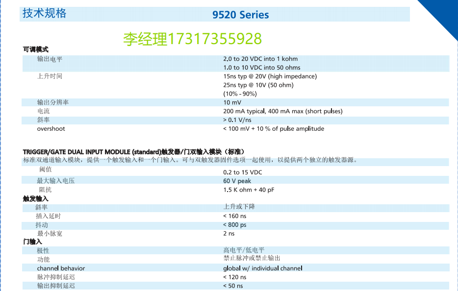 Quantum Composers 9520 Series脉冲延迟发生器规格: